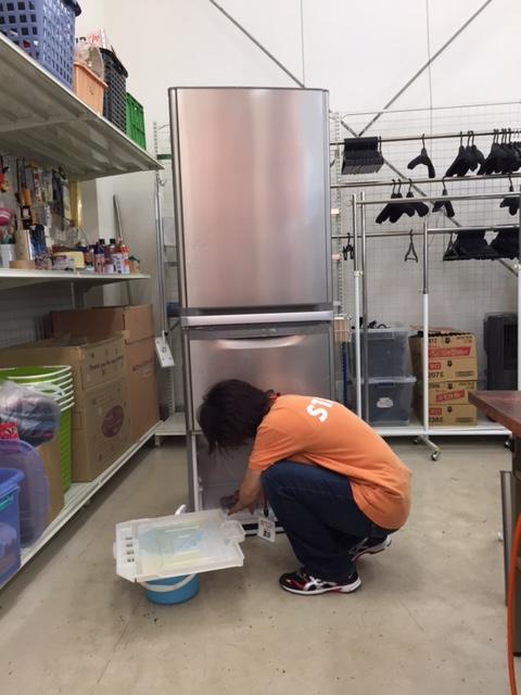 買取させて頂いた冷蔵庫、心を込めて清掃中(^^)
